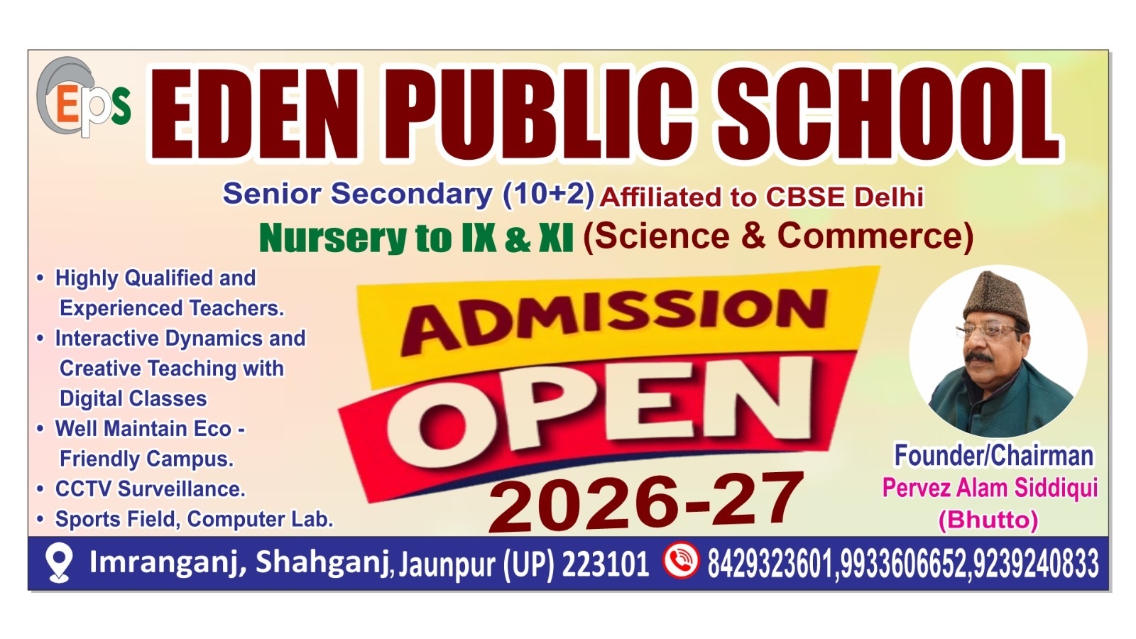 EDEN PUBLIC SCHOOL situated in Imranganj, Shahganj, Jaunpur, U.P.